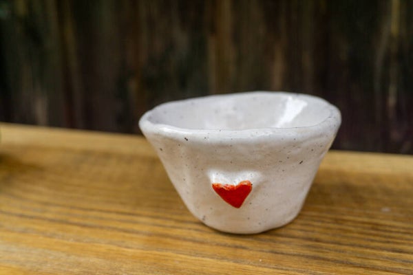Handgemachte Keramiktasse mit einem 3D Herz, das hervorsteht. Geeignet für einen Espresso oder einen kleinen Cappuccino oder einem Getränk deiner Wahl☕🤍